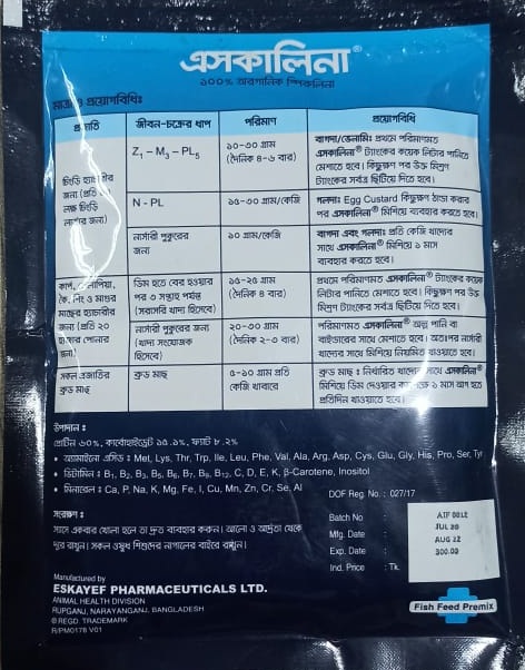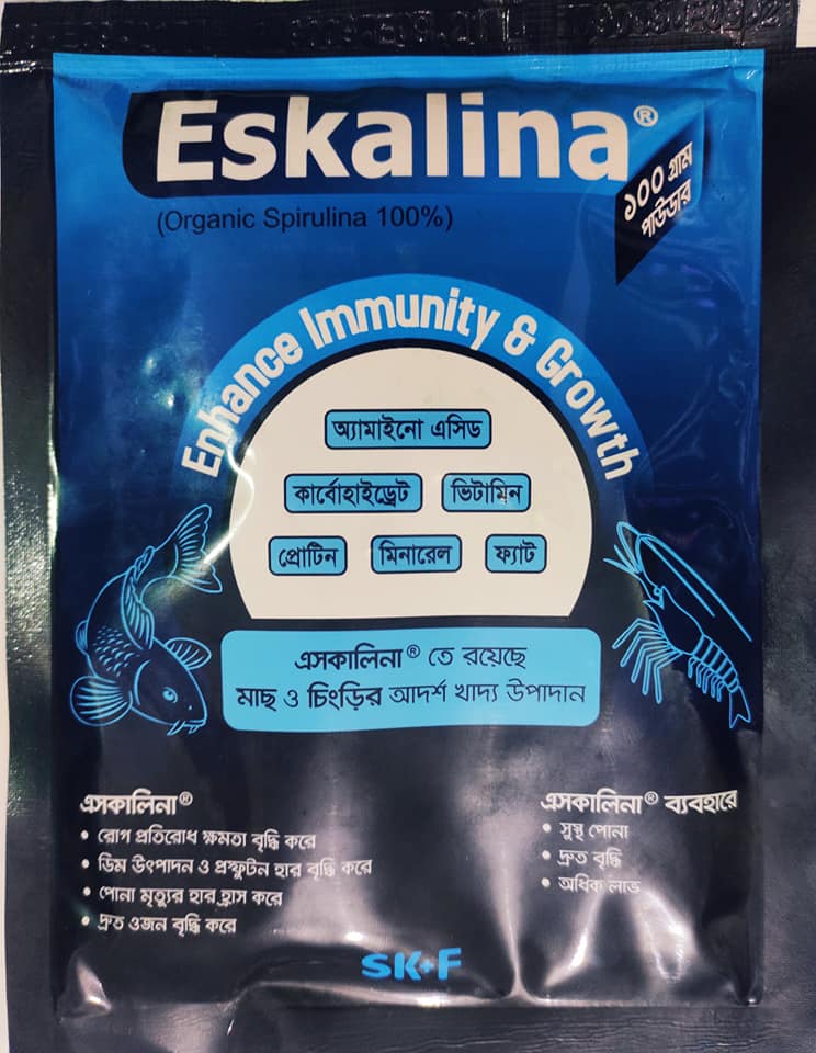 এসকালিনা মাছ ও চিংড়ির রােগ প্রতিরােধ ক্ষমতা এবং দ্রুত বৃদ্ধিতে কার্যকার