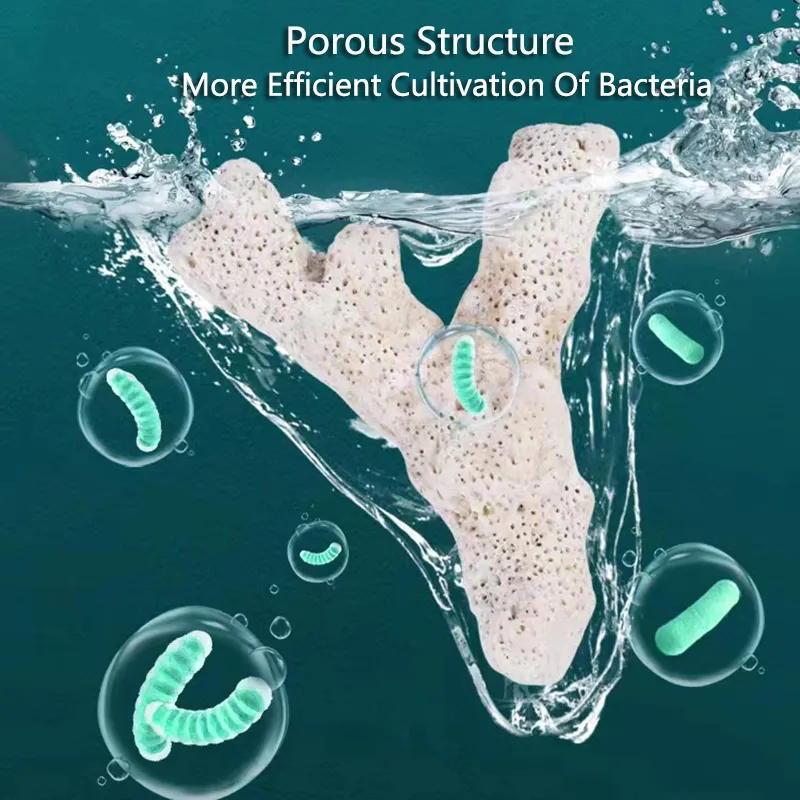 বায়োলজিক্যাল ফিল্টার: কোরাল চিপসের ছিদ্রযুক্ত গঠন ব্যাকটেরিয়া কলোনি গঠনে সহায়ক, যা পানির অ্যামোনিয়া এবং নাইট্রাইট দূর করতে সহায়ক।